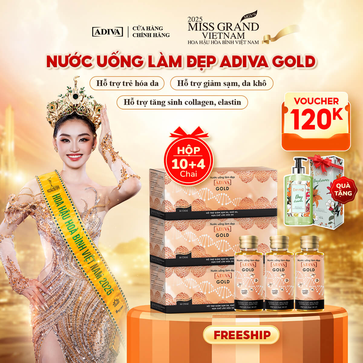 Combo 3 hộp COLLAGEN ADIVA GOLD (10 chai/hộp) 2,994k giảm còn 2,670k tặng 12 chai cùng loại và 1 Sữa tắm hương nước hoa ADIVA Day Dreamer