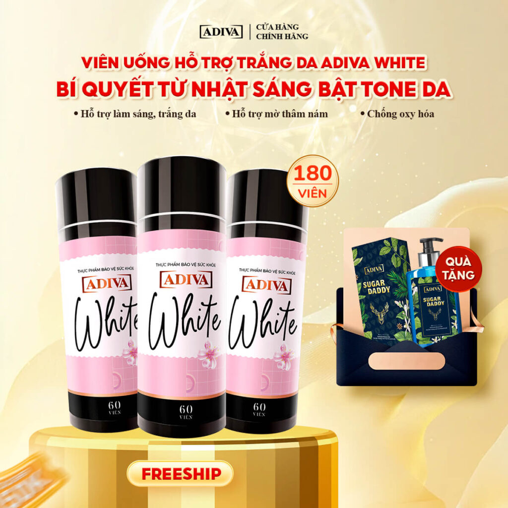 Combo 3 WHITE ADIVA (60 viên/hộp) 1,965k giảm còn 1,770k tặng 1 Sữa tắm hương nước hoa ADIVA Sugar Daddy